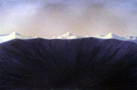 Suspendida encima del cráter 110 x 164 cm óleo y arena sobre tabla